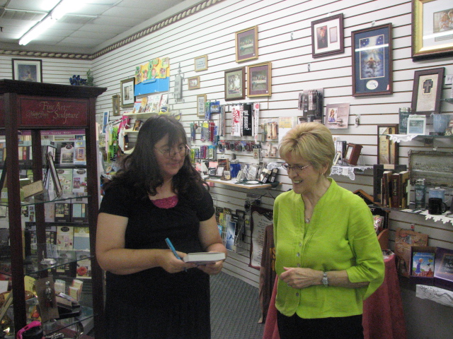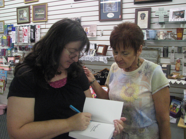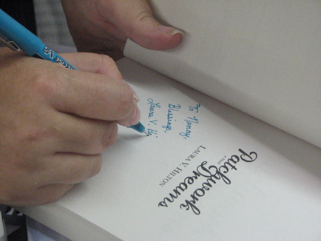 Author Laura Hilton sign another book