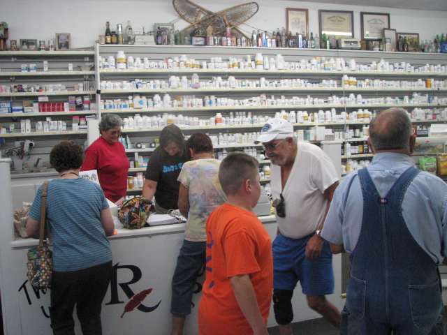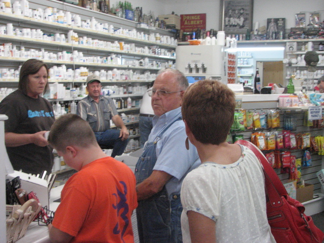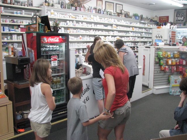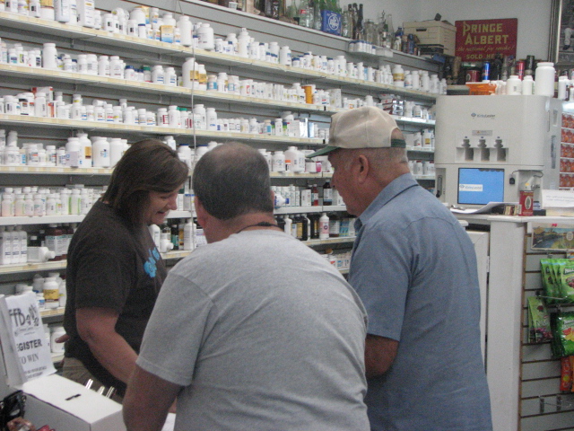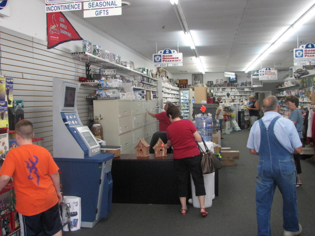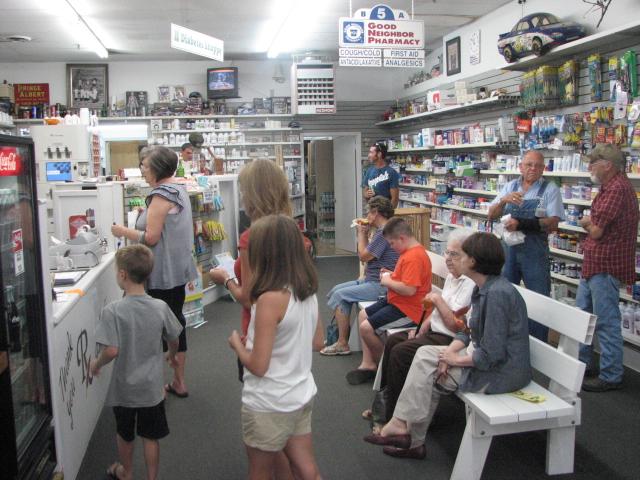 Folks gather around at Mark’s Pharmacy