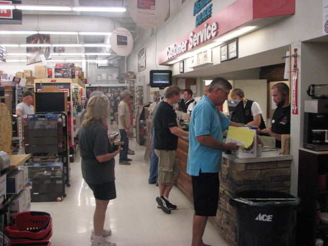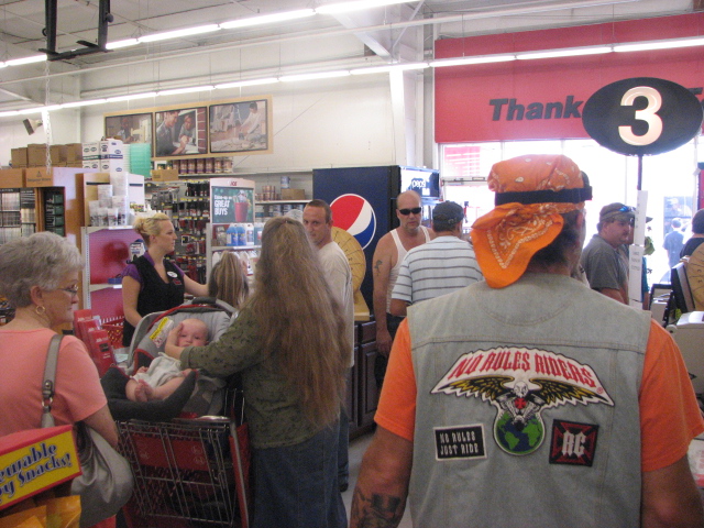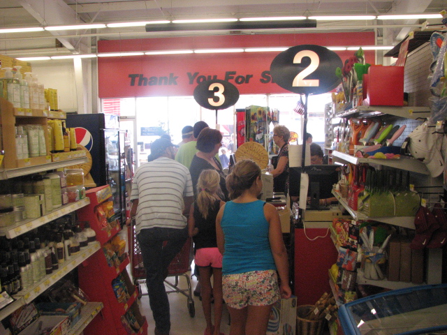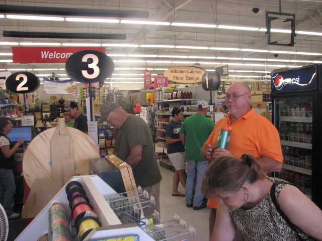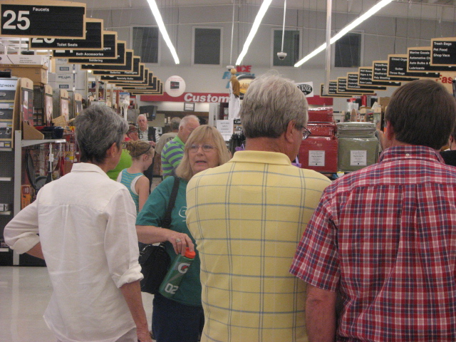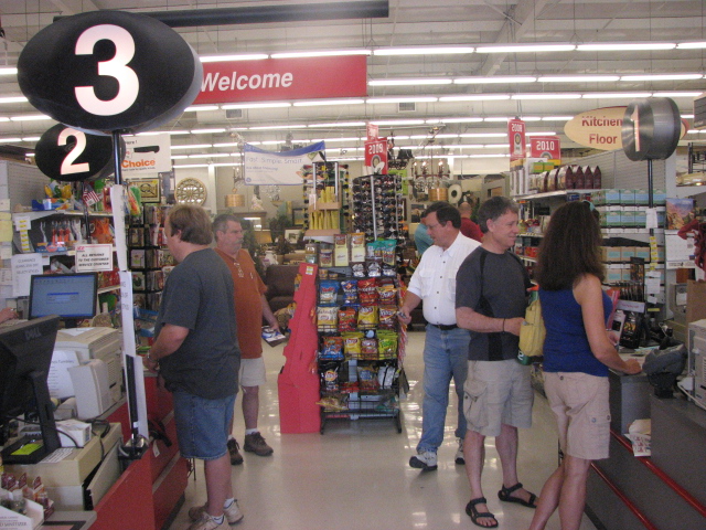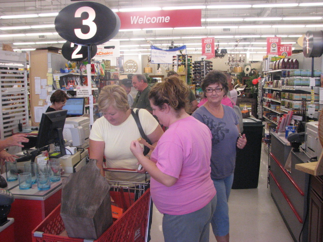 Folks line up to check out