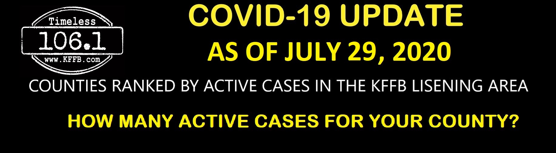 From the Timeless 106.1, KFFB news desk here is the update for COVID-19, we bring you National News updates top